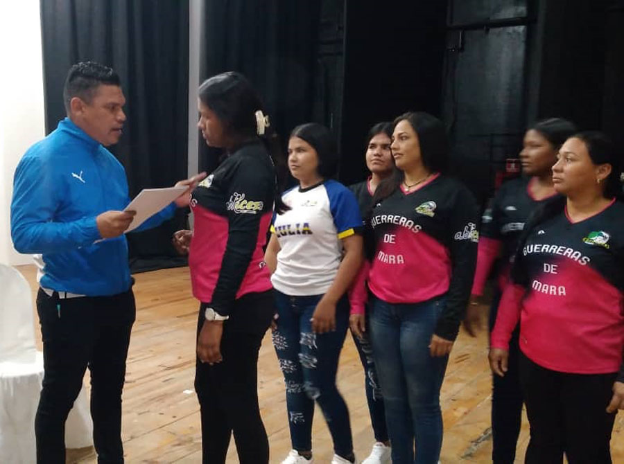 El acto se llevó a cabo en el Teatro Mara y estuvo dirigido por las autoridades municipales, entre ellos, Elio Morán, director general de la alcaldía marense y Robert Lozano, presidente del Instituto Municipal del Deporte de esa localidad de la Guajira venezolana.