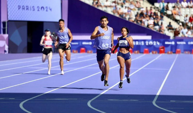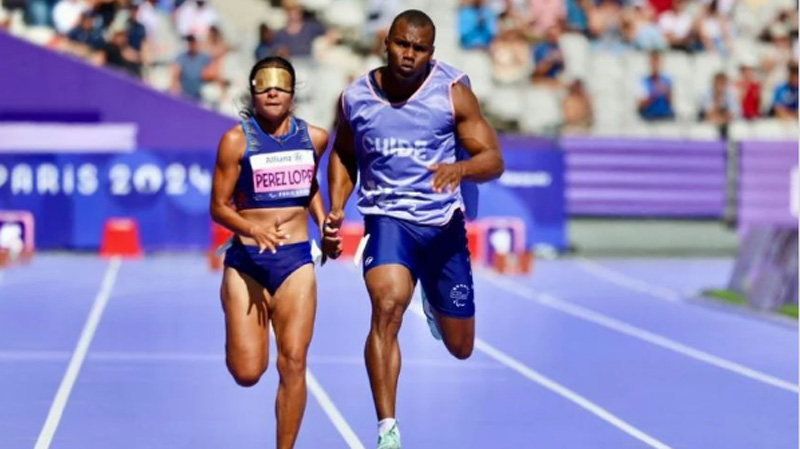 Linda (T11), guiada por Álvaro Casiani, paró el cronómetro en 12,24 sg y estará buscando clasificar a su segunda final paralímpica de 100 mts planos, prueda donde se coronó campeona en Tokio 2020.
