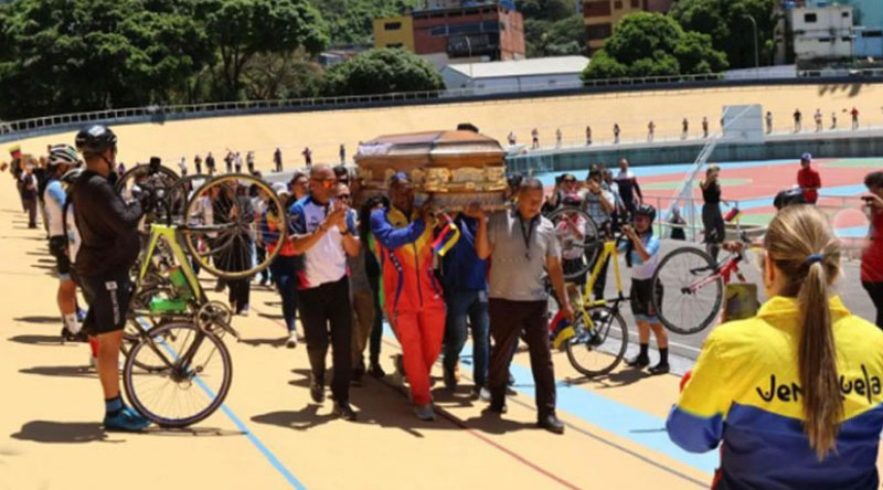 Horas antes las autoridades deportivas nacionales, familiares y amigos habían dado la última vuelta al óvalo del velódromo «Teo» Capriles, con los restos de Larreal.